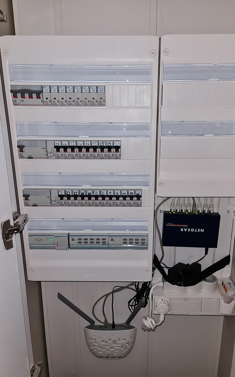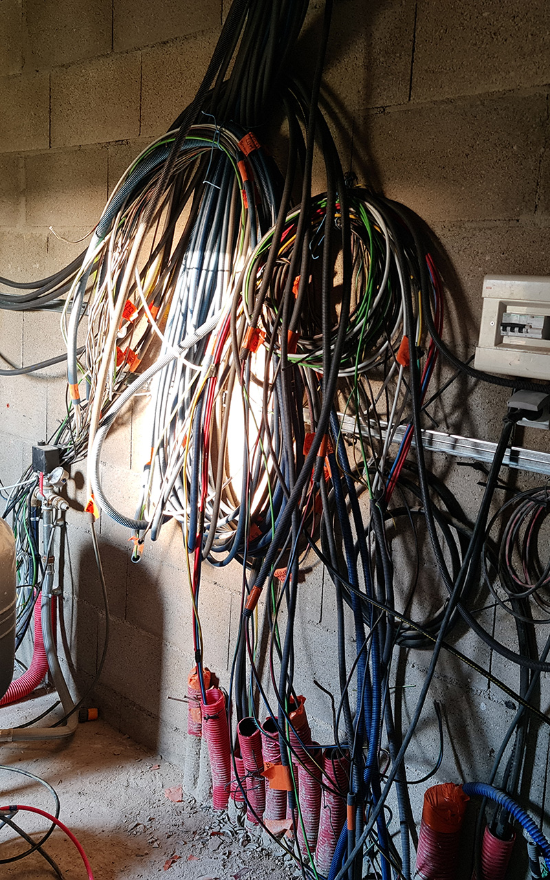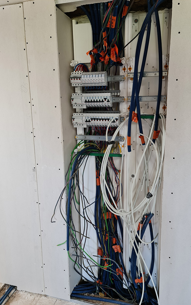 Le passage des câbles étant limités par les accès et les distances, je suis parti sur 3 tableaux électriques.